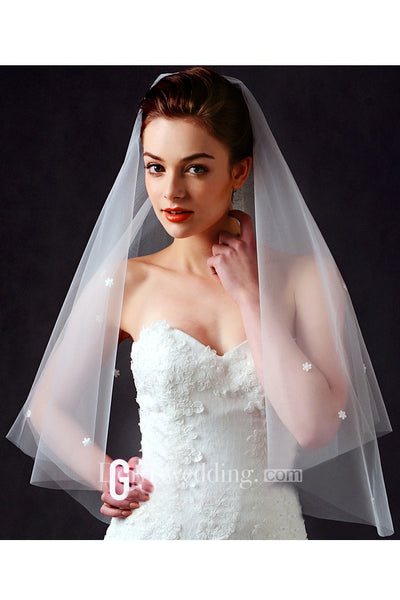 2018 Simple Tulle Elbow Wedding Veil with Flower Appliques