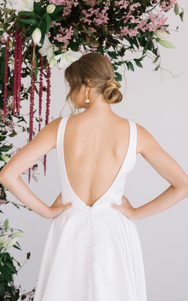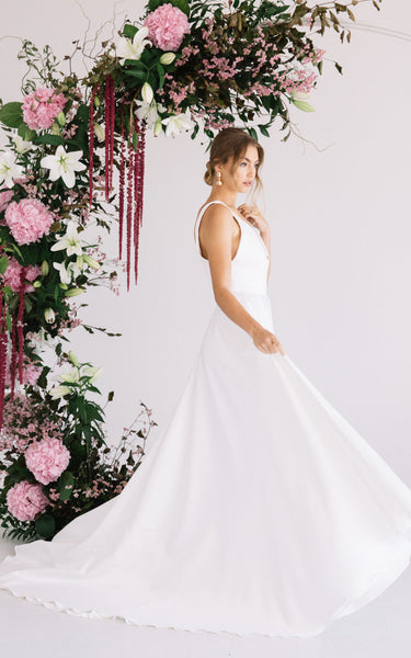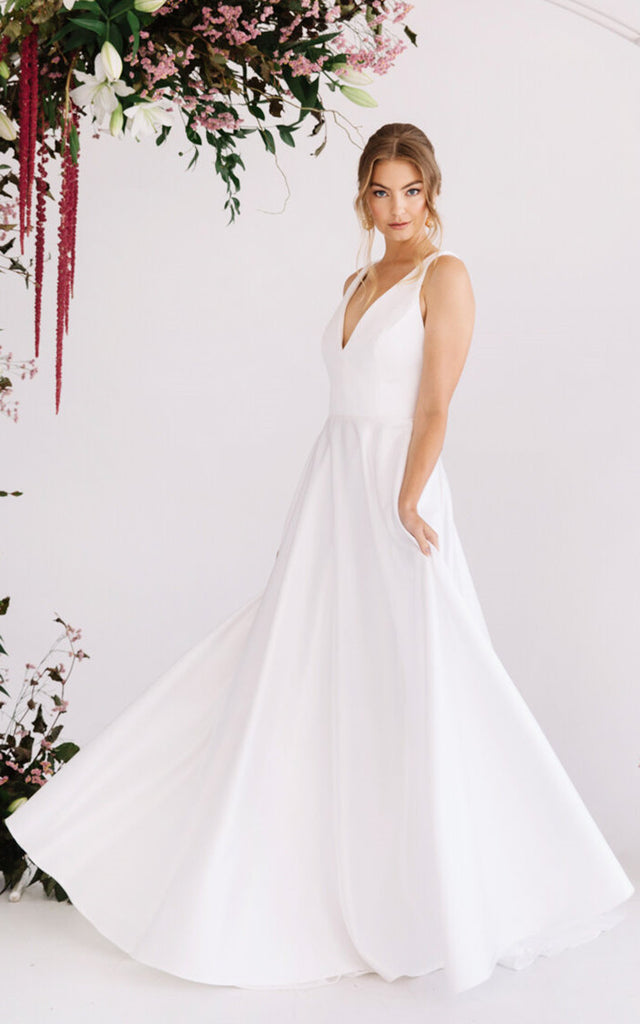 A Line Ethereal Satin Wedding Dress with Pockets and Train-716235