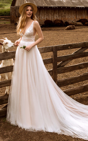 The defining feature of Chapel Train Bridal Gowns is the elegant and graceful chapel train that extends luxuriously behind the gown. Our collection offers a variety of train styles within the chapel length, allowing brides to choose the perfect level of drama. From a subtle and flowing train for a touch of romance to a more elaborate design with intricate lace or beading, the versatility ensures a personalized bridal look.