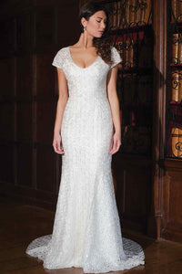 Immerse yourself in regal elegance with our captivating collection of Court Train Wedding Dresses. The defining feature of Court Train Wedding Dresses is the glorious court train that extends elegantly behind the gown.