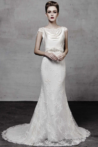 The cowl neckline carries a sense of vintage charm, harking back to the glamour of past eras. Brides who appreciate the timeless allure of bygone styles will find these dresses to be a perfect blend of classic elegance and contemporary fashion.