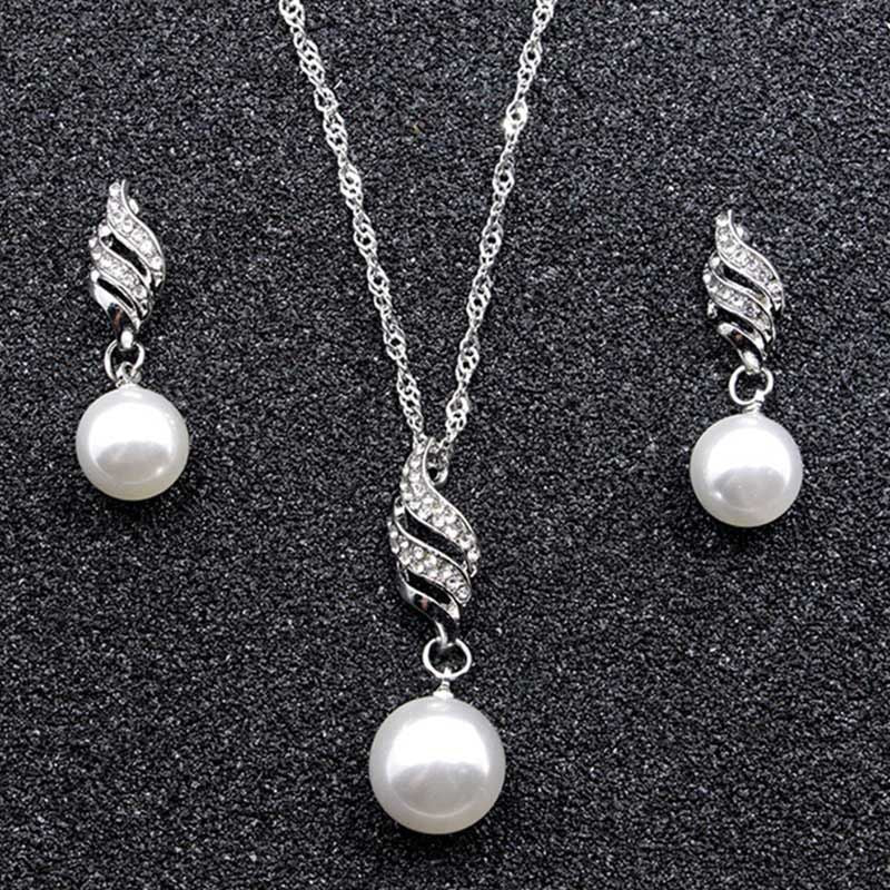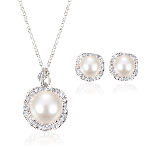 Imitation Pearl Pendant Elegant Women Fashion Silver Alloy Necklace Earrings Set
