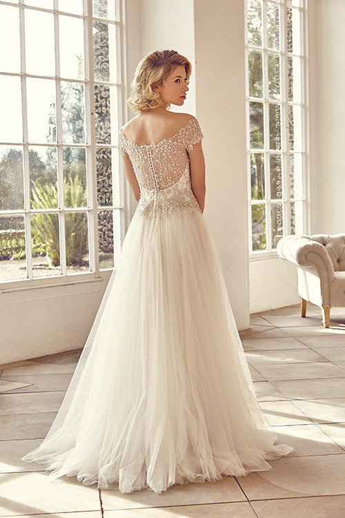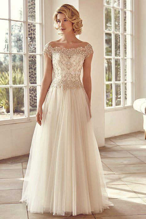 Tulle Beaded Off-The-Shoulder Maxi Wedding Dress-MK_700894