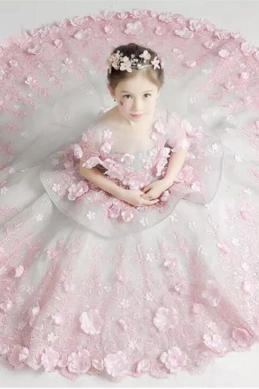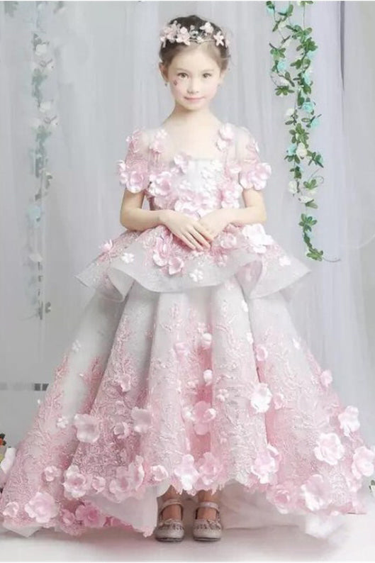 Fancy Floral Short Sleeve Ball Gown Flower Girl Dress With Peplum-402476