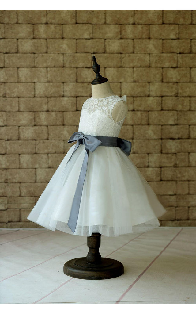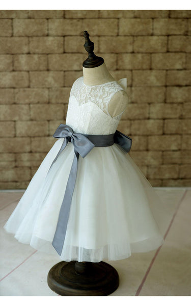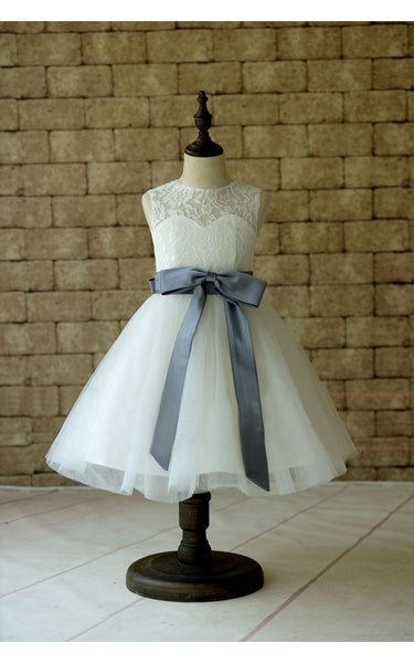 Ivory Lace Tulle Flower Girl Dress With Sash and Bow-ET_401640