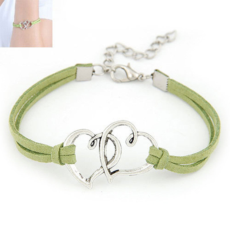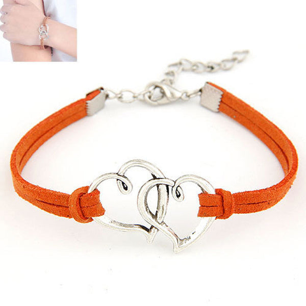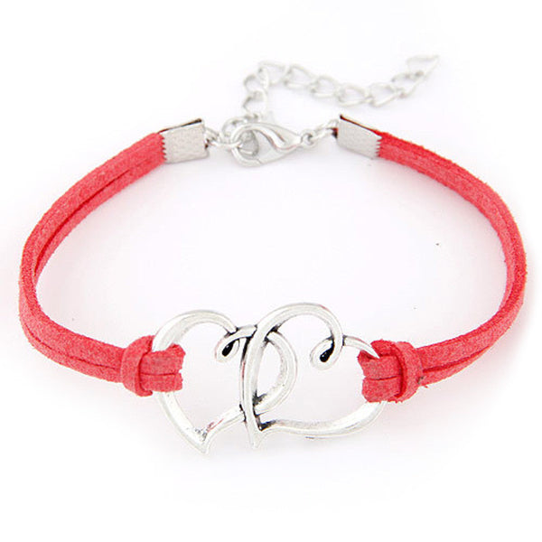 1PC Women Love Heart Handmade Alloy Rope Charm Jewelry Weave Bracelet Gift