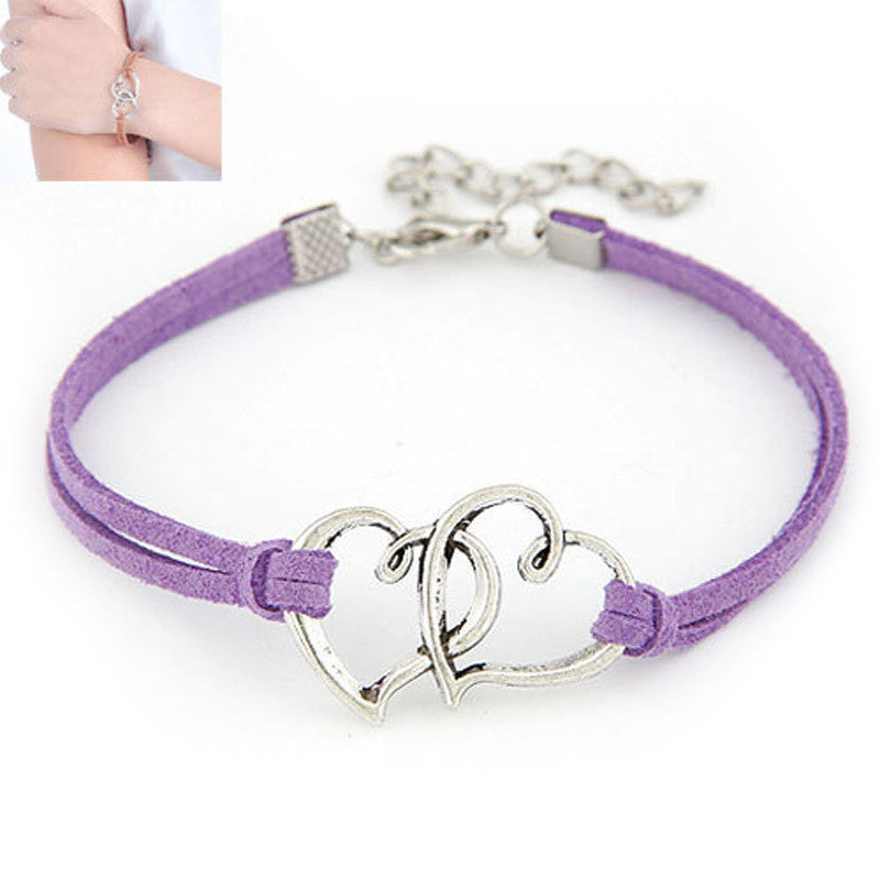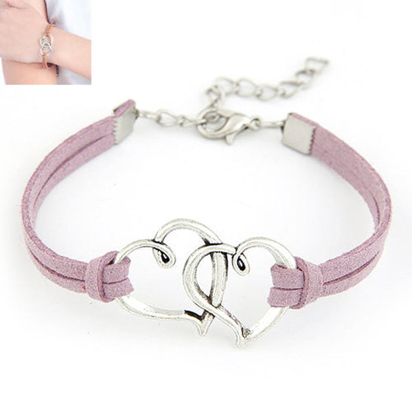 • 1PC Women Love Heart Handmade Alloy Rope Charm Jewelry Weave Bracelet Gift(without retail package)