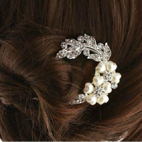 Bridal Wedding Rhinestones Crystals Pearl Hairpin Hair Clip Jewelry Flower