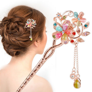 Retro Vintage Style Bridal Wedding Party Hairpins Elegant Women Colorful Butterfly Flower Hair Sticks Rhinestone Hair Accessory