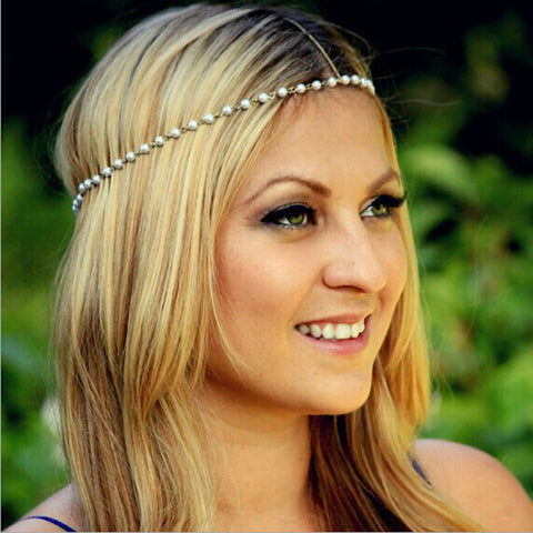 Women Handmade Pearl Head Chain Jewelry Headband Headpiece Hair Band