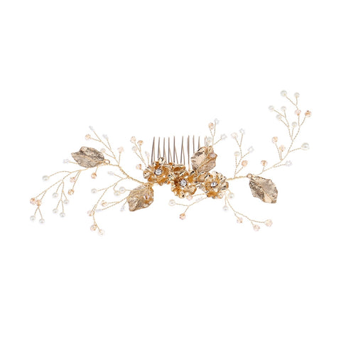 Wedding Hair Comb Bridal Floral Hair Comb Handmade Crystals Hair Pieces Wedding Headwear Comb (Golden)