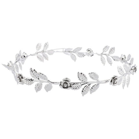 Silver tone and Rhinestone Leaf Leaves Metal Flower Crown
