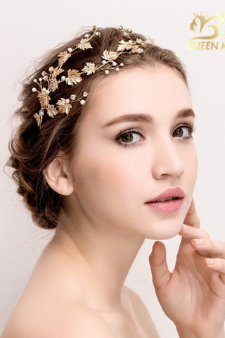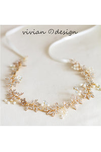 Handmade Vintage Golden Leaves Rhinestones Vines Hairband Bespoke-860302
