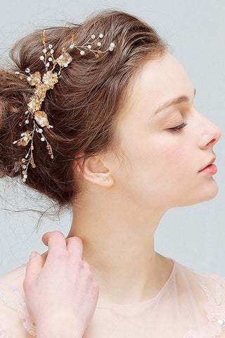 Aesthetic Delicate Gold Flower Rhinestone Crystal Pearl Manual Hair Comb-860270