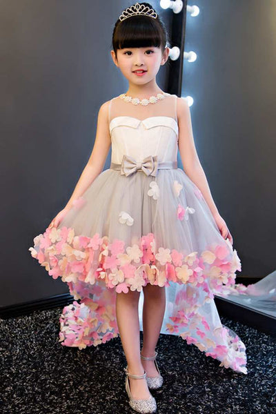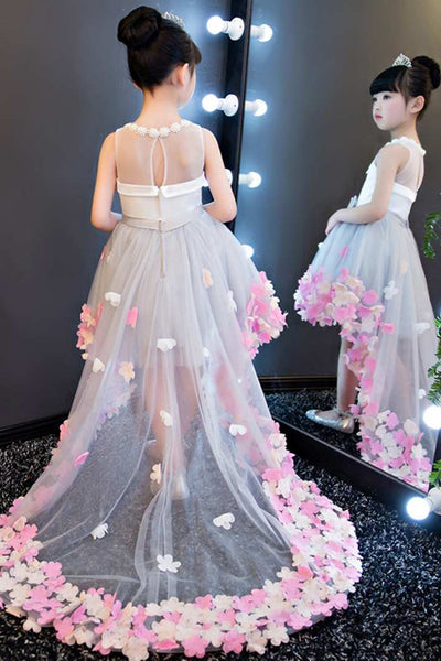 Sleeveless Pearl Neckline High Low Tulle Dress With Flowers-402462