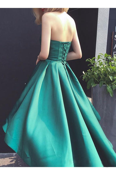 Sexy Sweetheart Empire Satin High-Low Lace-Up Gown With Ruching Homecoming Prom Evening Dress-334108