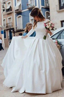 This wedding gown presents a harmonious balance between modesty and allure, featuring long sleeves that wrap the bride in a soft embrace of satin luxury. The sleeves elicit a sense of demure sophistication while providing an air of mystery to the bride's ensemble. The long-sleeve satin wedding dress is for the bride who seeks to encapsulate the essence of classic beauty with a serene, dignified presence, owning her moment with quiet confidence.