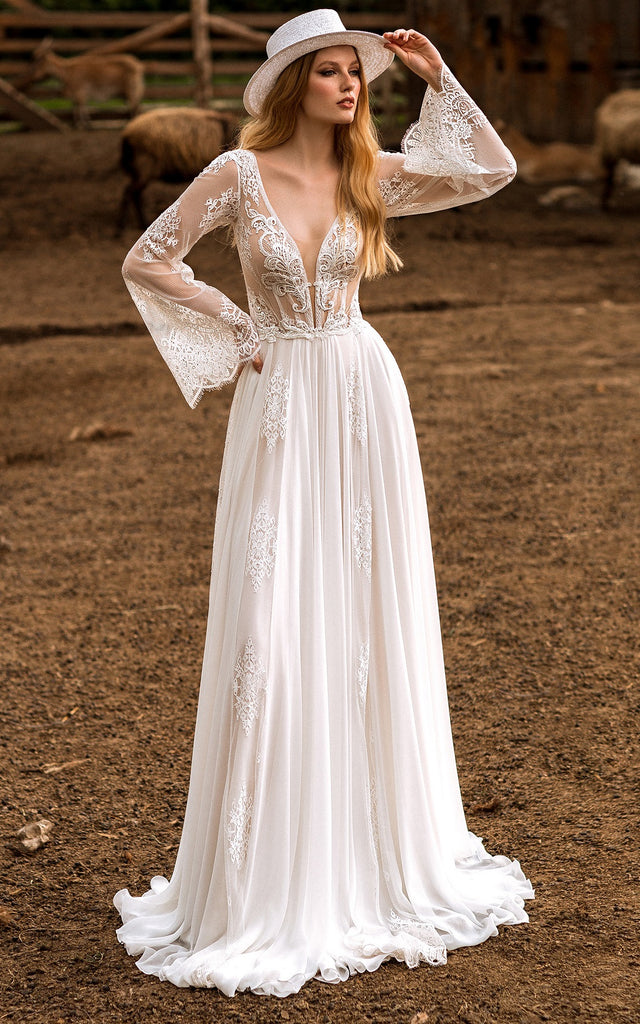 Imagine if you could be satisfied and content with your purchase. That can very much be your reality with the Casual Floor-length Long Sleeve Tulle A Line Open Back Wedding Dress with Appliques.