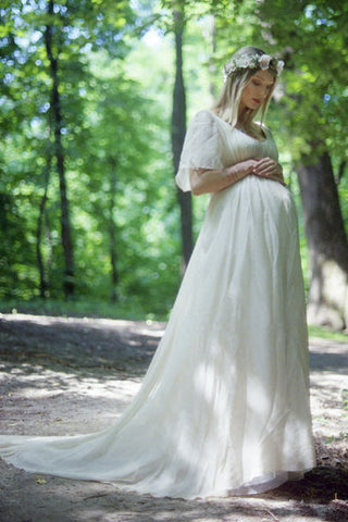 Empire waistlines, where the dress cinches just below the bust, are a common feature in Maternity Marriage Dresses. They create a flattering and flowing silhouette, allowing ample room for the baby bump. Maternity dresses prioritize breathability and softness. These materials ensure that the bride feels comfortable, especially in warmer weather or during long ceremonies. These dresses are crafted with the bride's comfort in mind, making them suitable for the entire wedding day, from the ceremony to the reception.