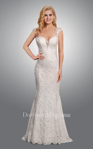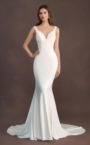 The mermaid wedding dress is designed to hug the body from the chest to the knee, highlighting the bride's natural shape. Its sleek, tailored fit creates a flattering and dramatic outline that enhances curves, making it a perfect option for brides who want to feel both confident and stunning.