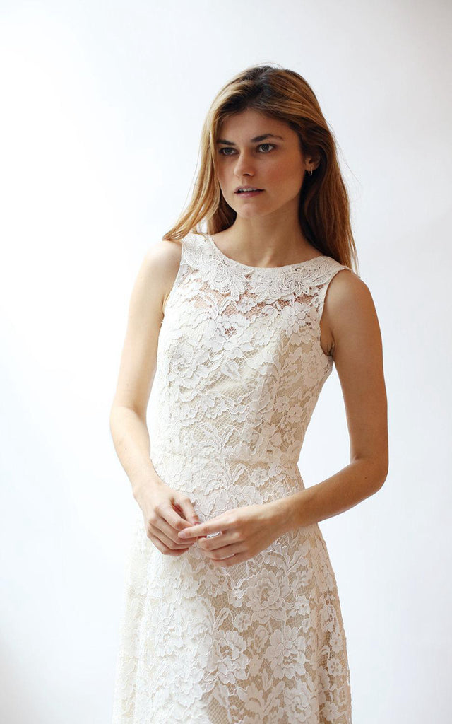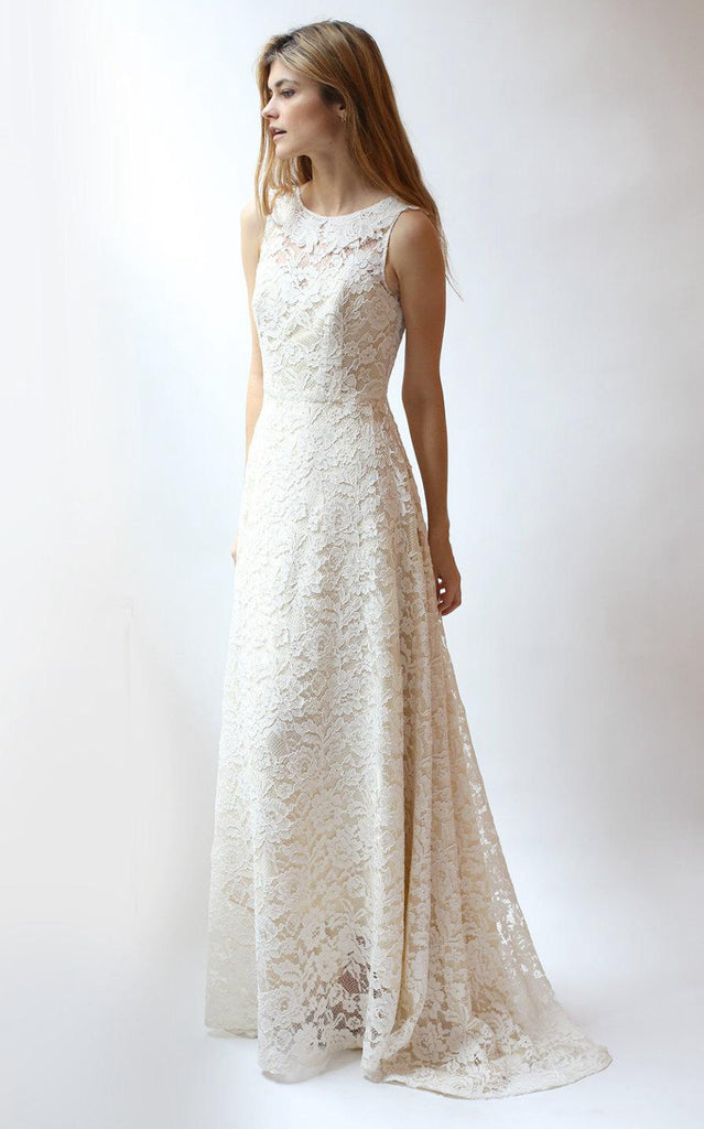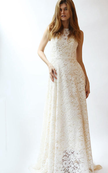 Jewel Neck A-Line Sleeveless Lace Dress With Low-V Back