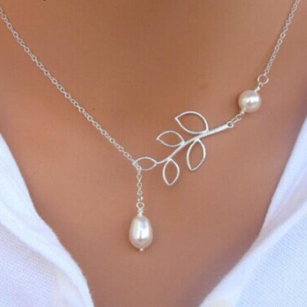 The Leaf Pearl Lariat Necklace destined to impress, and priced at only $13.99, for a limited time.