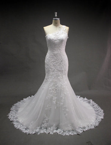 One shoulder bridal gowns have a classic charm that never goes out of style. They blend traditional and contemporary elements to create a truly distinctive look. The one shoulder design accentuates your neckline and collarbone, drawing attention to your upper body. It's a stylish alternative to the traditional strapless or sleeveless gowns. Our collection features a variety of one shoulder styles, from sleek and modern to romantic and bohemian. We understand that comfort is key for a joyous celebration. Our one shoulder bridal gowns are designed to provide a comfortable and secure fit while you dance the night away. Many of our one shoulder dresses can be customized to your specific measurements, ensuring a perfect fit.