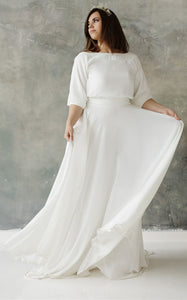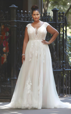 A plus size chiffon wedding dress combines flowing elegance with comfort, perfect for brides who want a flattering and graceful look on their special day. Chiffon, known for its lightweight and airy quality, drapes beautifully over curves, making it an ideal fabric for plus size brides seeking a romantic and effortless style.