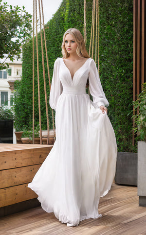 Designed with figure-flattering cuts, plus size chiffon wedding dresses often feature A-line or empire waist silhouettes. These designs help accentuate the waist while allowing the chiffon to cascade elegantly over the hips and legs, creating a balanced and sophisticated look.
