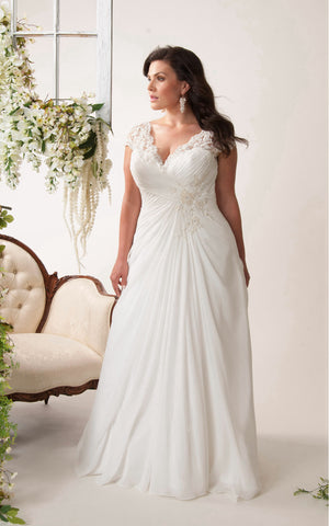 A plus size chiffon wedding dress combines flowing elegance with comfort, perfect for brides who want a flattering and graceful look on their special day. Chiffon, known for its lightweight and airy quality, drapes beautifully over curves, making it an ideal fabric for plus size brides seeking a romantic and effortless style.