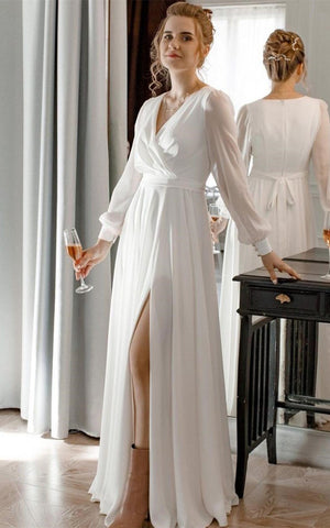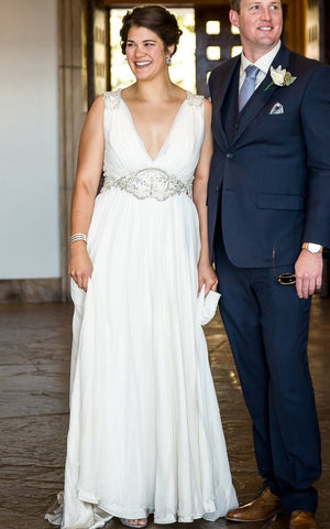 Designed with figure-flattering cuts, plus size chiffon wedding dresses often feature A-line or empire waist silhouettes. These designs help accentuate the waist while allowing the chiffon to cascade elegantly over the hips and legs, creating a balanced and sophisticated look.