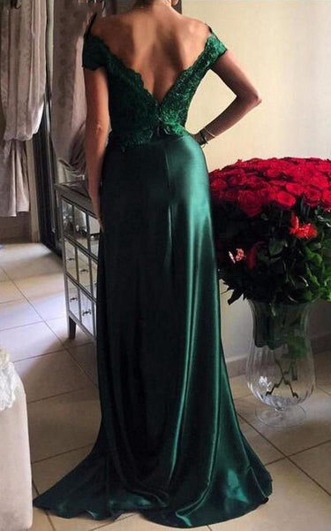 A-line Appliques Lace Split Long Jersey Prom Evening Dress-331311