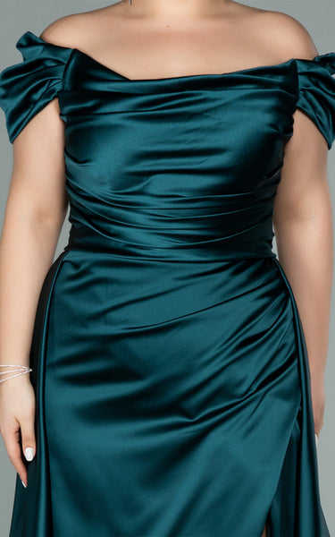 Plus Size Charming A Line Satin Prom Dress with Split Front-334447