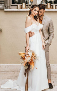 Our Satin Wedding Dresses feature lustrous satin fabrics that add opulent charm to your bridal ensemble. The smooth and shiny texture of satin captures the light beautifully, creating a breathtaking visual effect that enhances the overall glamour of your wedding day look.