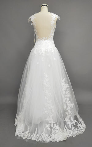 The scoop neck is known for its gentle curve, which provides a soft, romantic look. It subtly highlights the décolletage without being too revealing, making it an excellent choice for brides who want a balanced blend of modesty and allure.
