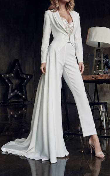 Formal Elegant Two Piece Satin Boho Long Sleeve Wedding Dress Simple Modest Western Sweetheart Jumpsuit Gown