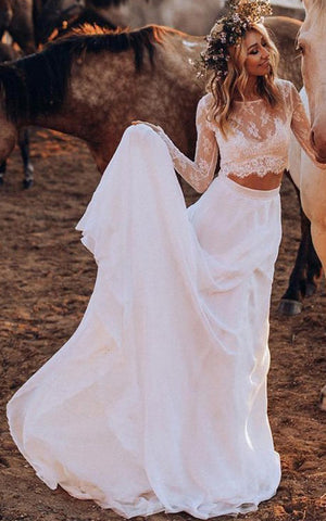 The Formal Elegant Two Piece Satin Boho Long Sleeve Wedding Dress Simple Modest Western Sweetheart Jumpsuit Gown destined to impress, and priced at only $184.59, for a limited time.