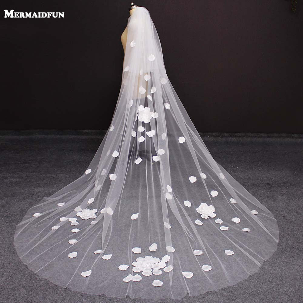 Real Photos 2 Layers Flower Appliques Wedding Veil Beautiful 3 M Long Cover Face 2 T Bridal Veil with Blusher Voile de Mariee