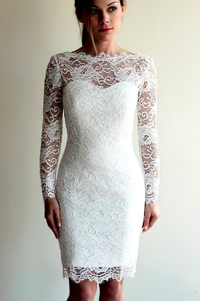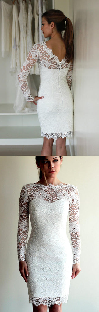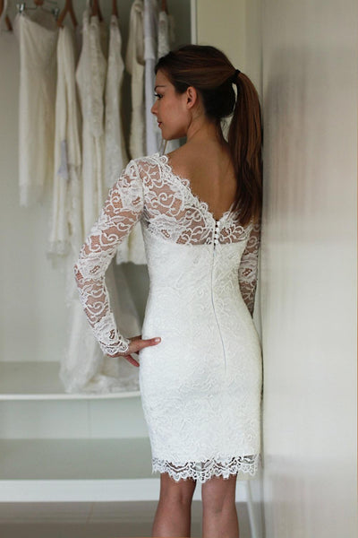 The Illusion Neckline Long Sleeve Short Lace Wedding Dress With V Back-ET_711608 destined to impress, and priced at only $139.29, for a limited time.