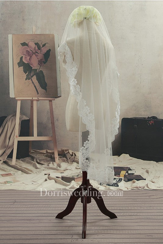The 2018 Simple Tulle Fingertip Wedding Veil with Lace Edge is the yin, to your yang. You've found what you're looking for.