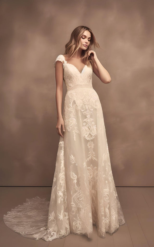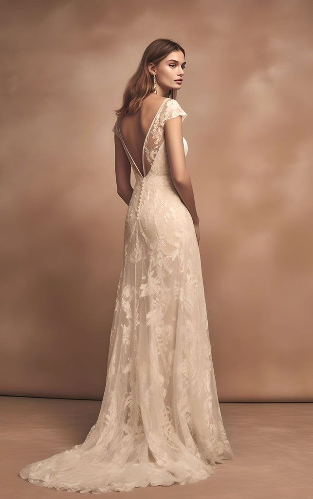 The 2023 A-Line Tulle Lace Sleeveless Wedding Dress with Train V-neck V Back Country Garden Simple Sexy Elegant-MW_760038 is the yin, to your yang. You've found what you're looking for.