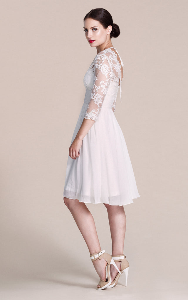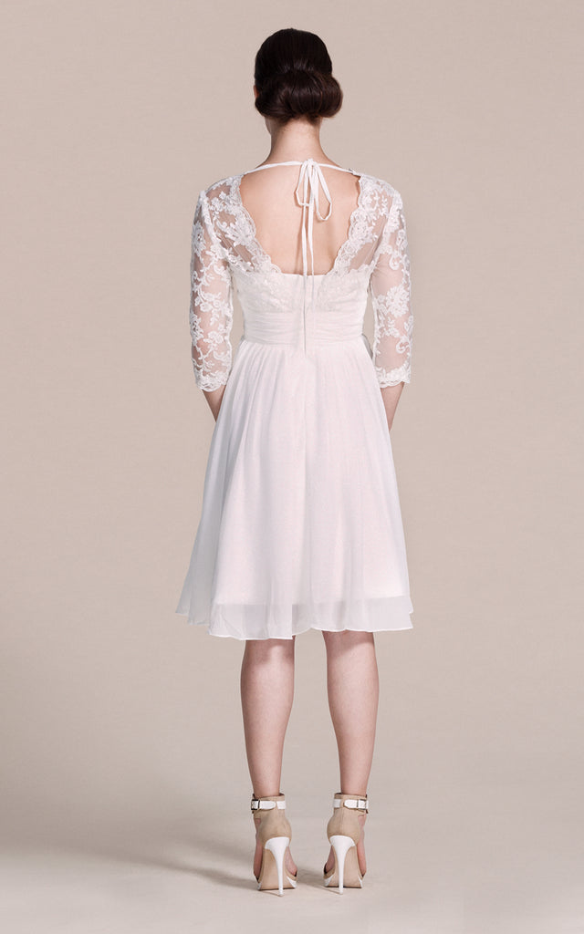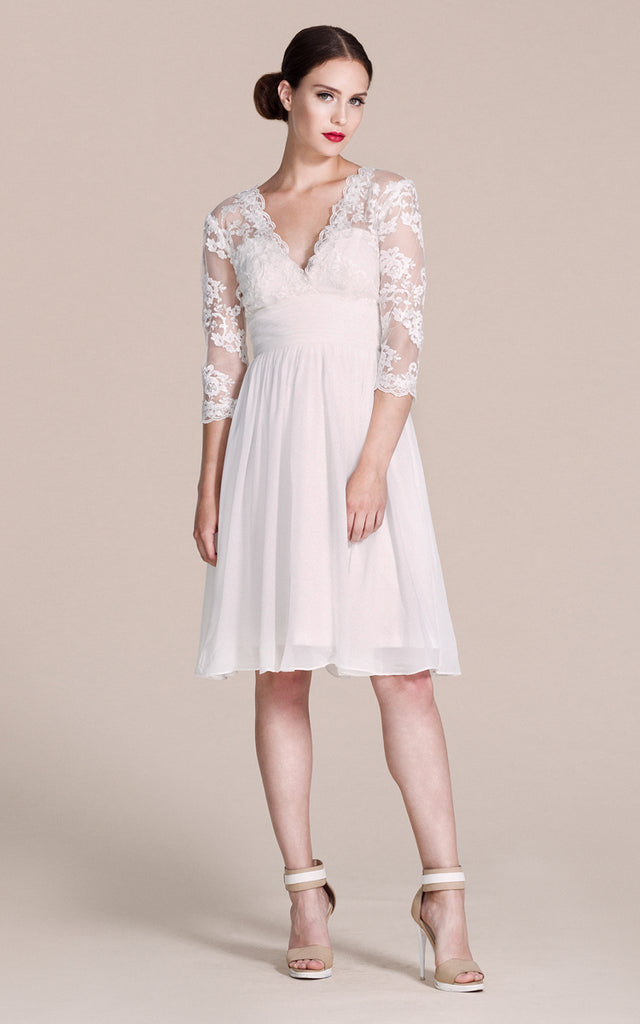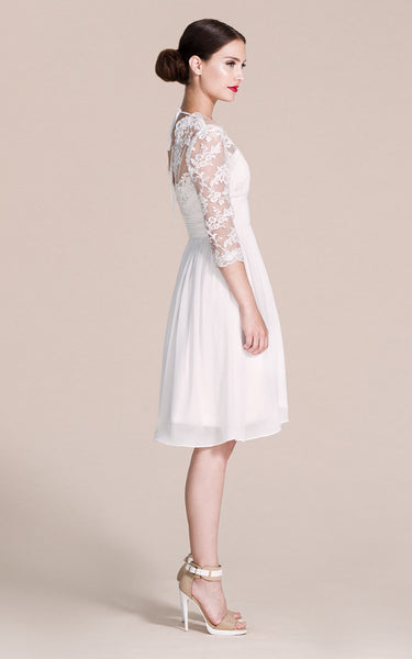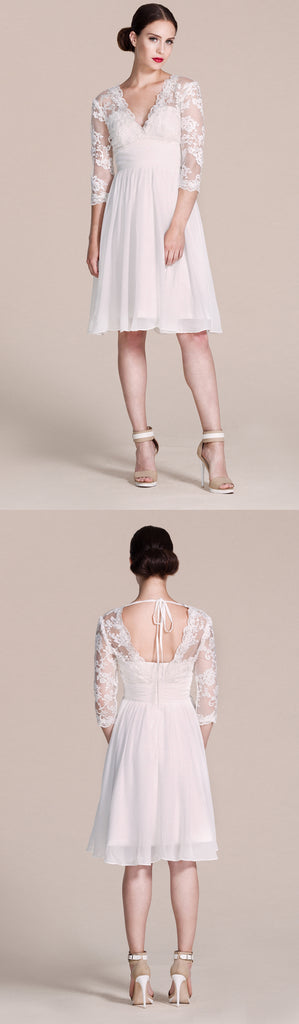 Long Sleeved V-neck A-line Short Wedding Dress-ZP_703929