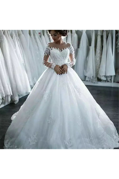 A-Line Ball Gown Jewel Sleeveless Lace Tulle Wedding Dress