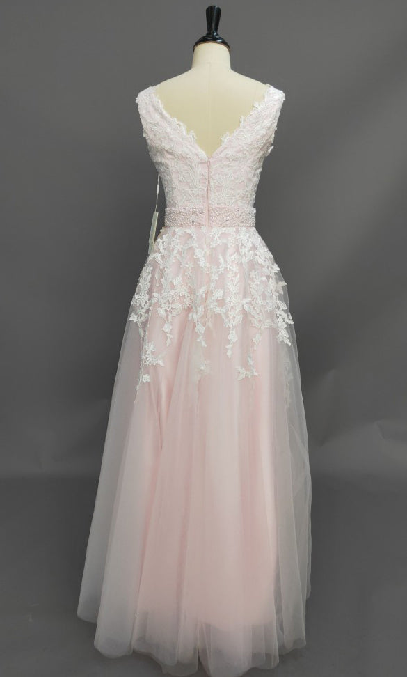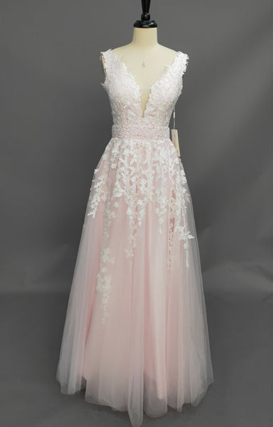 A-Line Ball Gown Lace Tulle V-neck Sleeveless Zipper Low-V Back Dress