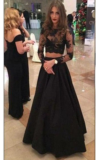 A-line Floor-length Long Sleeve Illusion Satin Lace Dress-331630