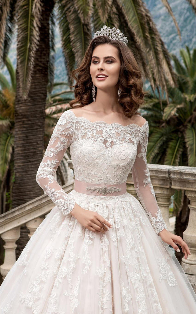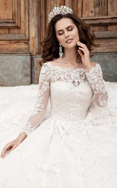 The A-Line Mini Off-The-Shoulder Long Sleeve Bell Pleats Beading Appliques Court Train Button Lace Dress-713753 is a sensational customer favorite, and we hope you like it just as much.