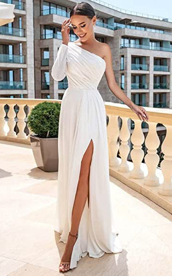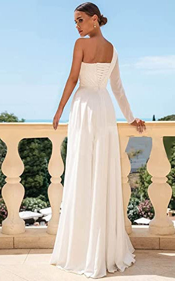 The A-Line One-shoulder Satin Wedding Dress Simple Elegant Adorable Beach Summer With Open Back And Long Sleeves And Ruching-716778 was built with people like you in mind. Something to keep you happy. Every. Single. Day.