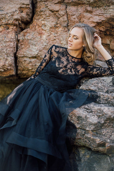 Imagine if you could be satisfied and content with your purchase. That can very much be your reality with the A-Line Scoop Floor-length Long Sleeve Illusion Back Dress With Appliques Black Wedding Dress-715613.