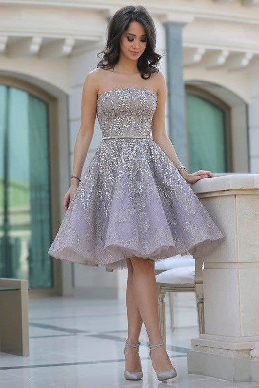 A-line Sleeveless Sequins Strapless Knee-length Homecoming Dress Prom-333969