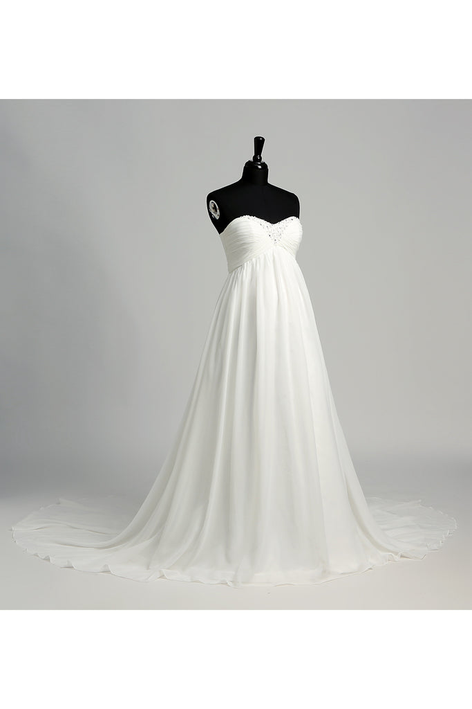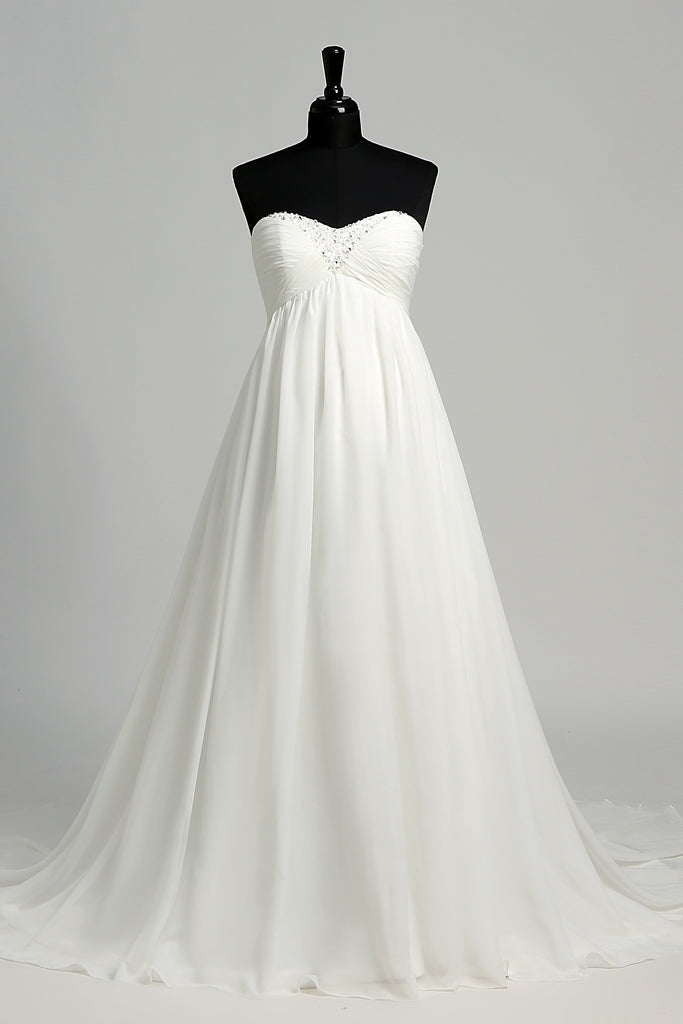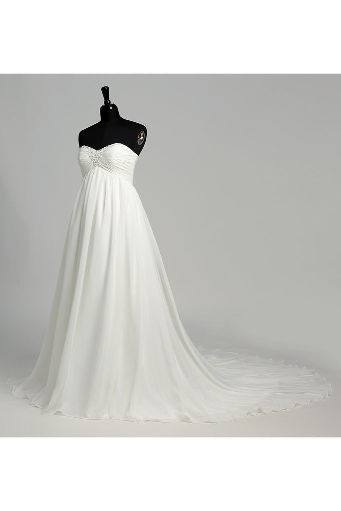 The A-line Sweetheart Sleeveless Floor-length Chiffon Maternity Wedding Dress with Court Train-715554 is evocative, to say the least, but that's why you're drawn to it in the first place.